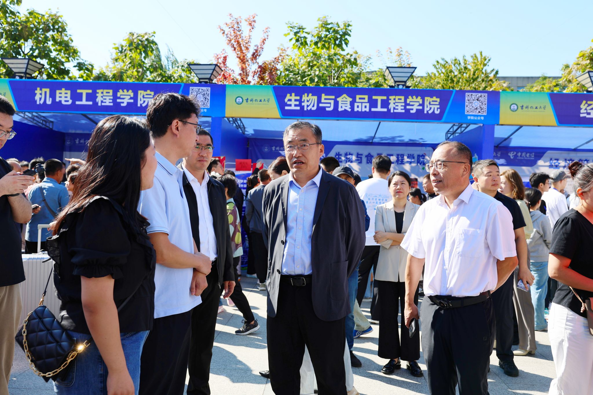 在迎新现场,张明耀仔细查看迎新报到数据实时播报平台,全面了解新生报到进度。逐一走访各学院迎新点位,认真听取工作安排,对各单位创新推出的迎新举措给予充分肯定。他强调,迎新工作是新生感受学校温度的第一扇窗,要以细致服务让新生感受到家的温暖,为他们尽快适应大学生活保驾护航。